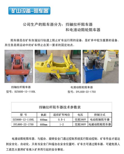 • 擋軸拉桿阻車器、電液動阻輪阻車器
